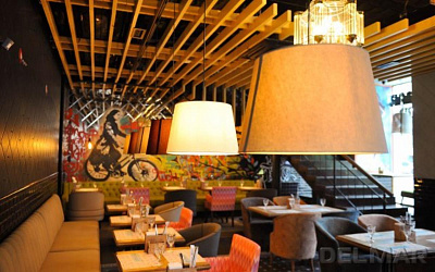 Создавая исключительный образ нового места, применены уникальные детали, индустриальные фактуры соединились с обилием дерева, света и живой зелени. Панорамные окна, мягкие кресла и диваны дают возможность отдохнуть с комфортом и располагают к приятному времяпрепровождению.