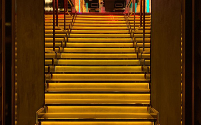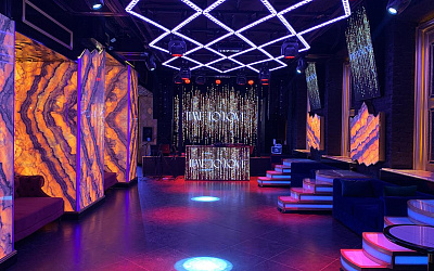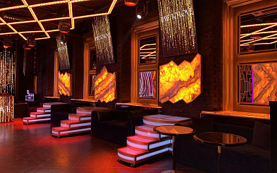 3 этажа тайных комнат, мраморная светящаяся барная стойка, колонны и подоконники из оникса, тонны звукового и осветительного оборудования, уникальный декор, черный лак и золото, все это позволило создать лучшее ночное заведение города.