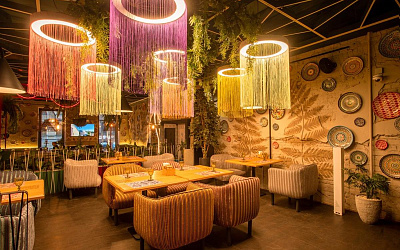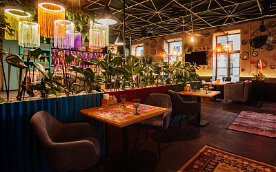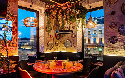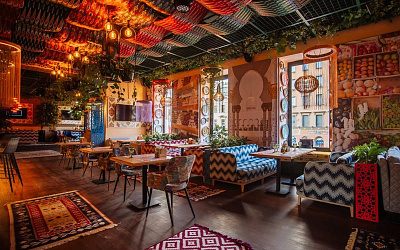 Современный двухэтажный ресторан с восточным колоритом, с разнообразными уникальными зонами. Дизайн центрального зала в стиле восточного базара и скрытый от лишних глаз Вип зал, первый этаж с укромными шатрами. Все это позволяет приятно провести время.