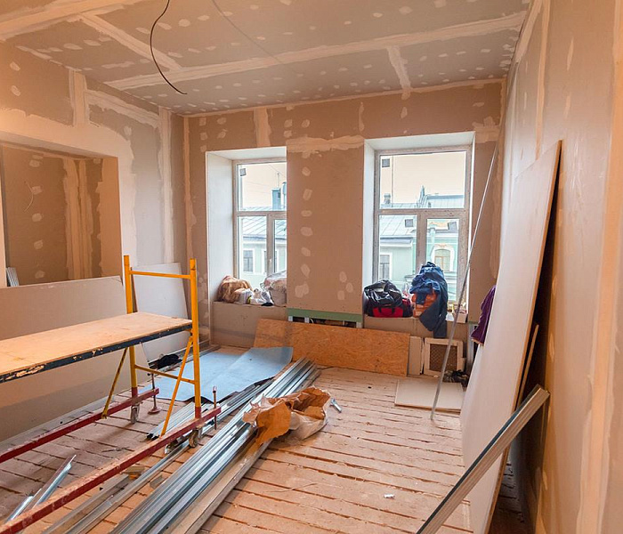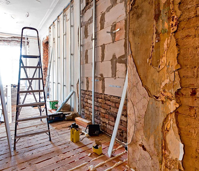 Проведение подготовительных работ. На этом этапе проводятся все необходимые работы по демонтажу старых конструкций, замене труб и электропроводки, а также уборке мусора и пыли.